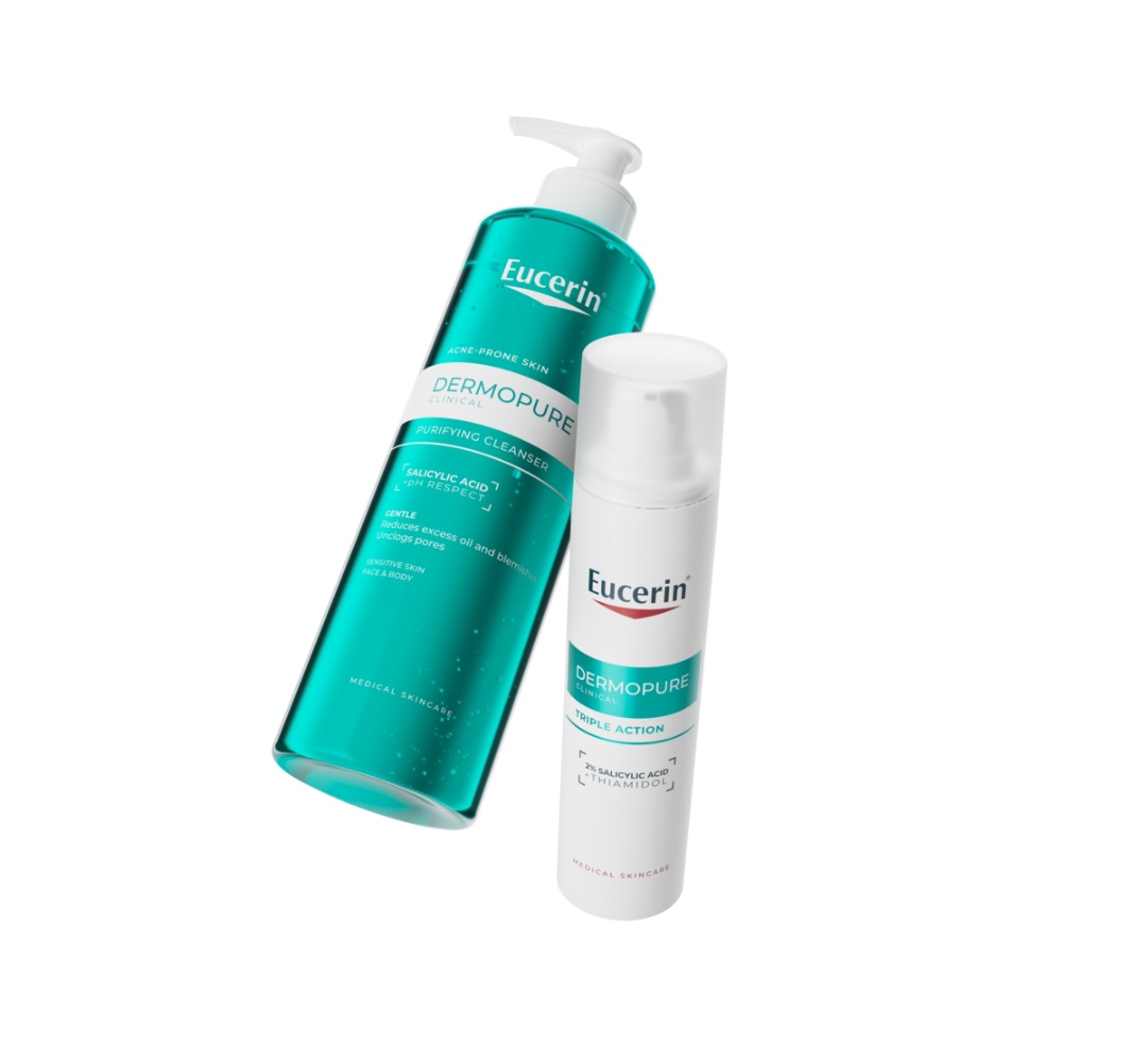 A problémás bőr kezelésének egyik kulcsa a rendszeres és tudatos, célzott arcápolás. Ennek támogatására az EUCERIN egy könnyen követhető, 3 lépéses alap rutint ajánl: a megújult csomagolású DermoPure Clinical Purifying Cleanser – Tisztító gél és a Triple Action Korrektív fluid hatékonyan tisztítják és ápolják az aknéra hajlamos bőrt. A rutin harmadik lépéseként az EUCERIN Sun termékcsalád egyik legnépszerűbb tagját, az Oil Control gél-krém arcra SPF50+ fényvédőt érdemes bevetni a magas szintű UV-védelem és mattító hatás érdekében. Ez a kombináció nemcsak a pattanások és a zsíros bőr tüneteivel veszi fel a harcot, hanem segít megelőzni a napfény okozta bőrkárosodást és a pigmentfoltok kialakulását is. Természetesen az akne súlyosságától és megjelenési helyétől függően – például a háton vagy mellkason – más testápolási megoldások is javasoltak lehetnek.